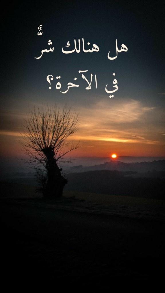 يتبيَّنُ لنا، وبتدبُّرِ هاتين الآيتَين الكريمتَين، أنَّ في الآخرةِ “شراً” سوف يَقِي اللهُ تعالى عبادَه المتقين منه، وأنَّ المعنى الذي تواضعنا عليه وفقاً لما يقضي به لسانُنا العربي المعاصر، هو أبعدُ ما يكون عن المعنى الذي تنطوي عليه كلمة “شر” الواردة في الآية الكريمةِ أعلاه.