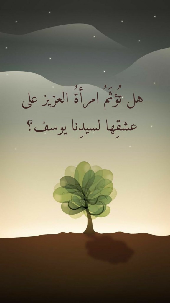 فامرأةُ العزيز قد حُكِمَ عليها من قِبَلِ أكثرِنا بما جعلَ منها مثالاً للمرأةِ الشهوانية التي لا تتورَّعُ عن الإقدامِ على أيِّ شيءٍ يُتيحُ لها الوصولَ إلى مُرادِها! وهذا ظلمٌ لا ينبغي لمن كان لقرآنِ اللهِ العظيم من المتدبِّرين. فلو أنَّنا تدبَّرنا ما جاءتنا به سورةُ يوسف، وفي الآيةِ الكريمة 31 منها تحديداً، لتبيَّنَ لنا أنَّ امرأةَ العزيز لم يكن لها إلا أن تفعلَ ما فعلت أما وقد قدَّرَ لها اللهُ تعالى أن تكونَ على مقربةٍ من سيدِنا يوسف الذي ألقى اللهُ تعالى عليه محبةً منه فاقت تلك التي سيُلقِيها من بعدُ على سيدِنا موسى؛ محبةً لا تملكُ حِيالَها أيُّ امرأةٍ غيرَ أن تفعلَ ما فعلته امرأةُ العزيز (وَقَالَ نِسْوَةٌ فِي الْمَدِينَةِ امْرَأَةُ الْعَزِيزِ تُرَاوِدُ فَتَاهَا عَنْ نَفْسِهِ قَدْ شَغَفَهَا حُبًّا إِنَّا لَنَرَاهَا فِي ضَلَالٍ مُبِينٍ. فَلَمَّا سَمِعَتْ بِمَكْرِهِنَّ أَرْسَلَتْ إِلَيْهِنَّ وَأَعْتَدَتْ لَهُنَّ مُتَّكَأً وَآتَتْ كُلَّ وَاحِدَةٍ مِنْهُنَّ سِكِّينًا وَقَالَتِ اخْرُجْ عَلَيْهِنَّ فَلَمَّا رَأَيْنَهُ أَكْبَرْنَهُ وَقَطَّعْنَ أَيْدِيَهُنَّ وَقُلْنَ حَاشَ لِلَّهِ مَا هَذَا بَشَرًا إِنْ هَذَا إِلَّا مَلَكٌ كَرِيمٌ) (30- 31 يوسف).