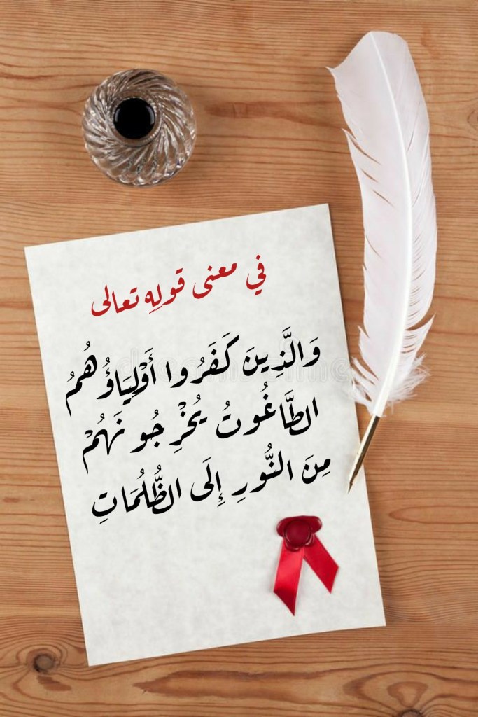 فالذين كفروا أولياؤهم الطاغوت. و”الطاغوت” هو كلُّ مُضِلٍّ من الإنسِ والجِن يتعهَّدُ الناسَ بالإضلالِ فيلازمُهم فلا يُفارقُهم حتى يُفلِحَ في إخراجهم من “النور” الذي كانوا يستنيرونَ بهَديِهِ، وهو كتابُ الله، إلى “الظلماتِ”، والتي هي كلُّ ما ينأى بالمرءِ بعيداً عن هَدي الله.