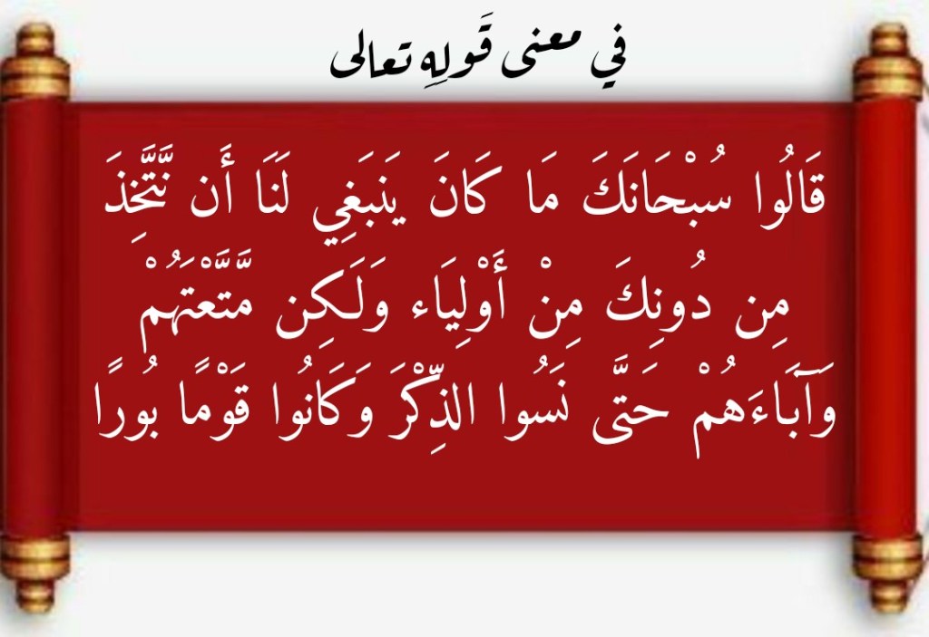 وفي هذا المنشور سوف أتطرقُ إلى ما بوسعِنا أن نتبيَّنَه من معنىً للآيةِ الكريمة 17 من سورة الفرقان (وَيَوْمَ يَحْشُرُهُمْ وَمَا يَعْبُدُونَ مِنْ دُونِ اللَّهِ فَيَقُولُ أَأَنْتُمْ أَضْلَلْتُمْ عِبَادِي هَؤُلَاءِ أَمْ هُمْ ضَلُّوا السَّبِيل)، وذلك بالاستعانةِ بما اشتملَ عليه القرآنُ العظيم من قولٍ للهِ تعالى يُعينُ على ذلك.