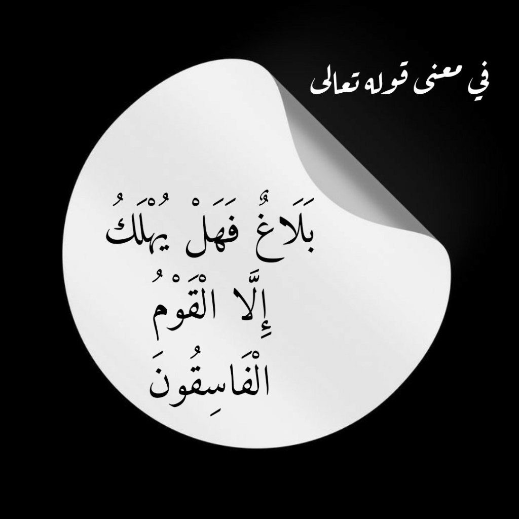 ويبرهنُ المتجاسرون على قرآنِ اللهِ العظيم على جهالتِهم بما فصَّلته وبيَّنته آياتُه الكريمة من حكمِ اللهِ تعالى على كلِّ مَن فسقَ عنها بهذا الذي هم عليه من إغفالٍ لقولِ اللهِ تعالى الذي جاءتنا به سورةُ الأحقاف في الآية الكريمة 35 منها (بَلَاغٌ فَهَلْ يُهْلَكُ إِلَّا الْقَوْمُ الْفَاسِقُونَ).