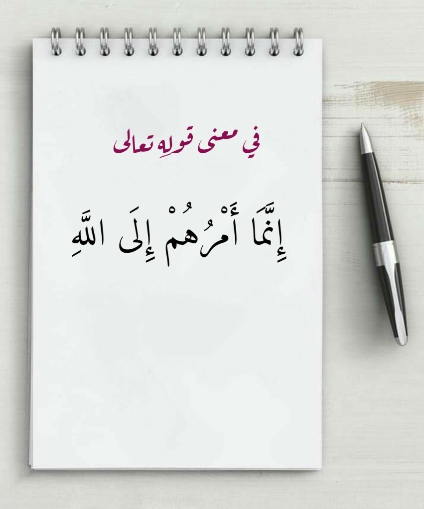 وبذلك يكونُ معنى قولِهِ تعالى “إِنَّمَا أَمْرُهُمْ إِلَى اللَّهِ” هو ما بالإمكان إيجازُه بالكلماتِ التالية: “إنما مَرجِعُهم إلى اللهِ يومَ القيامة”.