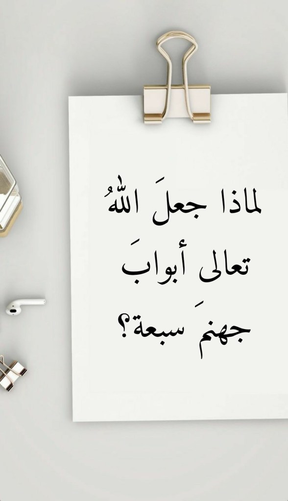 جعلَ اللهُ تعالى لجهنمَ سبعةَ أبوابٍ، وذلك كما يتبيَّنُ لنا بتدبُّرِ الآيتين الكريمتين 43- 44 من سورة الحجر (وَإِنَّ جَهَنَّمَ لَمَوْعِدُهُمْ أَجْمَعِينَ. لَهَا سَبْعَةُ أَبْوَابٍ لِكُلِّ بَابٍ مِنْهُمْ جُزْءٌ مَقْسُوم). فلماذا كانت أبوابُ جهنم سبعة؟