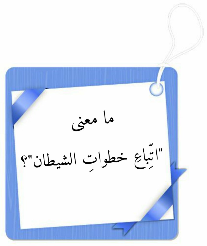 نهانا اللهُ تعالى في قرآنه العظيم عن “اتِّباعِ خطواتِ الشيطان”: (يَا أَيُّهَا النَّاسُ كُلُوا مِمَّا فِي الْأَرْضِ حَلَالًا طَيِّبًا وَلَا تَتَّبِعُوا خُطُوَاتِ الشَّيْطَانِ إِنَّهُ لَكُمْ عَدُوٌّ مُبِينٌ) (168 البقرة)، (يَا أَيُّهَا الَّذِينَ آمَنُوا لَا تَتَّبِعُوا خُطُوَاتِ الشَّيْطَانِ وَمَنْ يَتَّبِعْ خُطُوَاتِ الشَّيْطَانِ فَإِنَّهُ يَأْمُرُ بِالْفَحْشَاءِ وَالْمُنْكَرِ) (من 21 النور)، (يَا أَيُّهَا الَّذِينَ آمَنُوا ادْخُلُوا فِي السِّلْمِ كَافَّةً وَلَا تَتَّبِعُوا خُطُوَاتِ الشَّيْطَانِ إِنَّهُ لَكُمْ عَدُوٌّ مُبِين) (208 البقرة)، (كُلُوا مِمَّا رَزَقَكُمُ اللَّهُ وَلَا تَتَّبِعُوا خُطُوَاتِ الشَّيْطَانِ إِنَّهُ لَكُمْ عَدُوٌّ مُبِينٌ) (من 142 الأنعام).