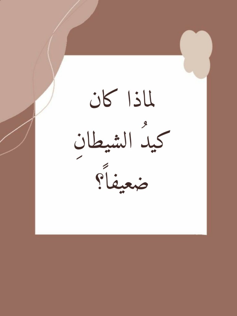نقرأُ في سورةِ النساء ما أنبأنا اللهُ تعالى به بشأنِ هذا الذي هو عليه الشيطانُ من كيدٍ ضعيف (إِنَّ كَيْدَ الشَّيْطَانِ كَانَ ضَعِيفًا) (من 76 النساء). فلماذا كان كيدُ الشيطانِ ضعيفاً؟