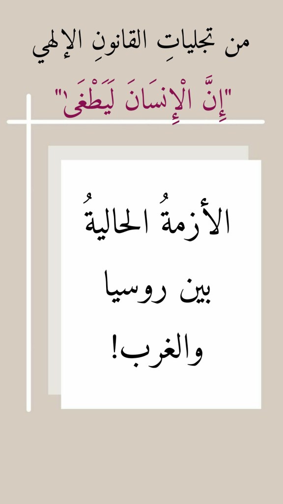 يتبيَّنُ لنا إذاً، وبتدبُّرِ ما تقدَّم، أن ليس هنالك من توصيفٍ لما يجري اليومَ بين روسيا والغرب هو أفضلُ من توصيفِ القرآنِ له بوصفِه تجلياً لهذا الذي جُبِلَ عليه الإنسانُ من طغيان!