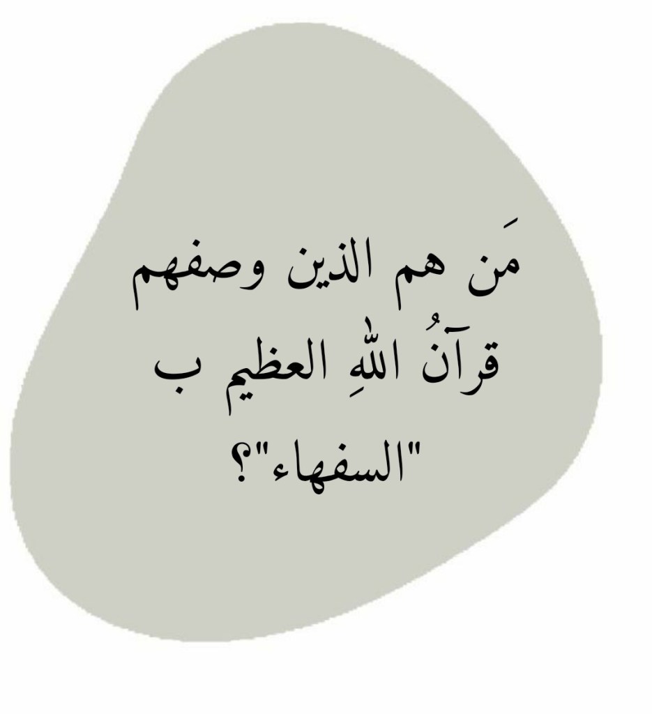 وردت كلمةُ “السفهاء” خمسَ مراتٍ في القرآنِ العظيم: (وَإِذَا قِيلَ لَهُمْ آمِنُوا كَمَا آمَنَ النَّاسُ قَالُوا أَنُؤْمِنُ كَمَا آمَنَ السُّفَهَاءُ أَلَا إِنَّهُمْ هُمُ السُّفَهَاءُ وَلَكِنْ لَا يَعْلَمُونَ) (13 البقرة)، (سَيَقُولُ السُّفَهَاءُ مِنَ النَّاسِ مَا وَلَّاهُمْ عَنْ قِبْلَتِهِمُ الَّتِي كَانُوا عَلَيْهَا) (من 142 البقرة)، (وَاخْتَارَ مُوسَى قَوْمَهُ سَبْعِينَ رَجُلًا لِمِيقَاتِنَا فَلَمَّا أَخَذَتْهُمُ الرَّجْفَةُ قَالَ رَبِّ لَوْ شِئْتَ أَهْلَكْتَهُمْ مِنْ قَبْلُ وَإِيَّايَ أَتُهْلِكُنَا بِمَا فَعَلَ السُّفَهَاءُ مِنَّا) (من 155 الأعراف)، (وَلَا تُؤْتُوا السُّفَهَاءَ أَمْوَالَكُمُ الَّتِي جَعَلَ اللَّهُ لَكُمْ قِيَامًا وَارْزُقُوهُمْ فِيهَا وَاكْسُوهُمْ وَقُولُوا لَهُمْ قَوْلًا مَعْرُوفًا) (5 النساء).