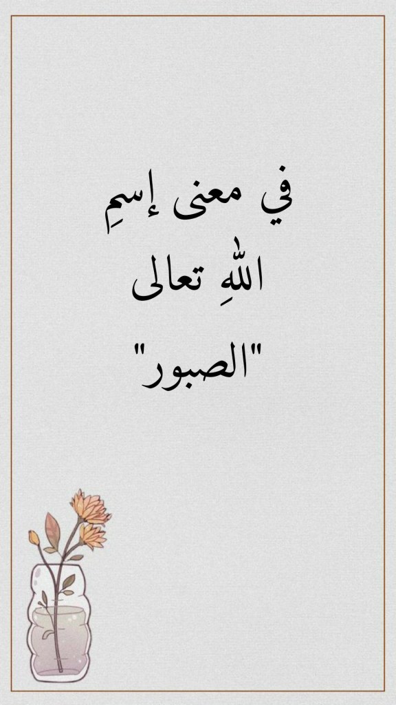 “الصبور” من أسماءِ اللهِ تعالى التي اصطُلِحَ على تسميتِها بـ “أسماءِ اللهِ الحسنى”؛ هذه التسميةُ التي ذُكِرَت أربعَ مرات في قرآنِ اللهِ العظيم: