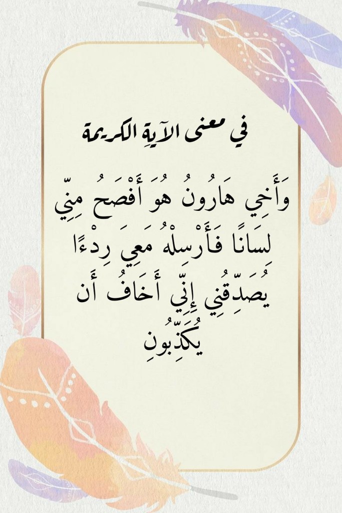 ولذلك دعا سيدُنا موسى ربَّه (وَاحْلُلْ عُقْدَةً مِنْ لِسَانِي. يَفْقَهُوا قَوْلِي) (27- 28 طه). ولذلك أيضاً قالَ فرعونُ الطاغية عن سيدِنا موسى ما حفظه لنا قولُه تعالى (وَلَا يَكَادُ يُبِينُ) (من 52 الزخرف)، أي “بالكاد يكونُ بمقدورِك أن تستبينَ من قولِه شيئاً”. ولقد استجابَ اللهُ تعالى رجاءَ عبدِه موسى فأيَّدَه بأخيهِ هارونَ رسولاً نبياً: (اذْهَبْ أَنْتَ وَأَخُوكَ بِآيَاتِي وَلَا تَنِيَا فِي ذِكْرِي. اذْهَبَا إِلَى فِرْعَوْنَ إِنَّهُ طَغَى. فَقُولَا لَهُ قَوْلًا لَيِّنًا لَعَلَّهُ يَتَذَكَّرُ أَوْ يَخْشَى. قَالَا رَبَّنَا إِنَّنَا نَخَافُ أَنْ يَفْرُطَ عَلَيْنَا أَوْ أَنْ يَطْغَى. قَالَ لَا تَخَافَا إِنَّنِي مَعَكُمَا أَسْمَعُ وَأَرَى. فَأْتِيَاهُ فَقُولَا إِنَّا رَسُولَا رَبِّكَ فَأَرْسِلْ مَعَنَا بَنِي إِسْرَائِيلَ وَلَا تُعَذِّبْهُمْ قَدْ جِئْنَاكَ بِآيَةٍ مِنْ رَبِّكَ وَالسَّلَامُ عَلَى مَنِ اتَّبَعَ الْهُدَى) (42- 47 طه).