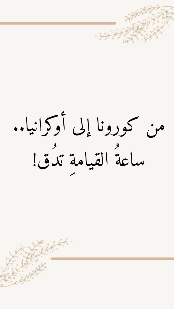 لقد شدَّدَ اللهُ تعالى في قرآنِه العظيم على ما لاقترابِ الساعةِ من عظيمِ ظهورٍ في حياةِ الإنسان. ويكفينا في هذا السياقِ أن نستذكرَ ما جاءتنا به سورةُ القمَر في الآيةِ الكريمة الأولى منها (اقْتَرَبَتِ السَّاعَةُ وَانْشَقَّ الْقَمَرُ). وإنَّ لمن المنطقي أن تزدادَ وتيرةُ الظهوراتِ ذاتُ الصِّلةِ باقترابِ الساعة، وذلك باقترابِنا من يومِ القيامة ساعةً فساعة. ولذلك كان من المنطقي أيضاً أن تجيءَ أحداثُ أوكرانيا ما أن أوشكت جائحةُ كورونا على الانتهاء. ولذلك فإنَّه لمن المنطقي أيضاً أن يعقبَ نهايةَ الأزمةِ الراهنةِ بين روسيا والغرب حدثٌ آخر، وبالطريقةِ ذاتِها التي تجلى لنا بها هذا التعاقبُ القدَري بين كورونا وأوكرانيا، وذلك تعزيزاً وتكريساً لما ينبغي أن نخلصَ إليه من أنَّ الدنيا تغذُّ السيرَ على الطريقِ الذي سينتهي بها لا محالةَ إلى الزوالِ وذلك بقيامِ الساعة ومجيءِ عصرِ الآخرة.