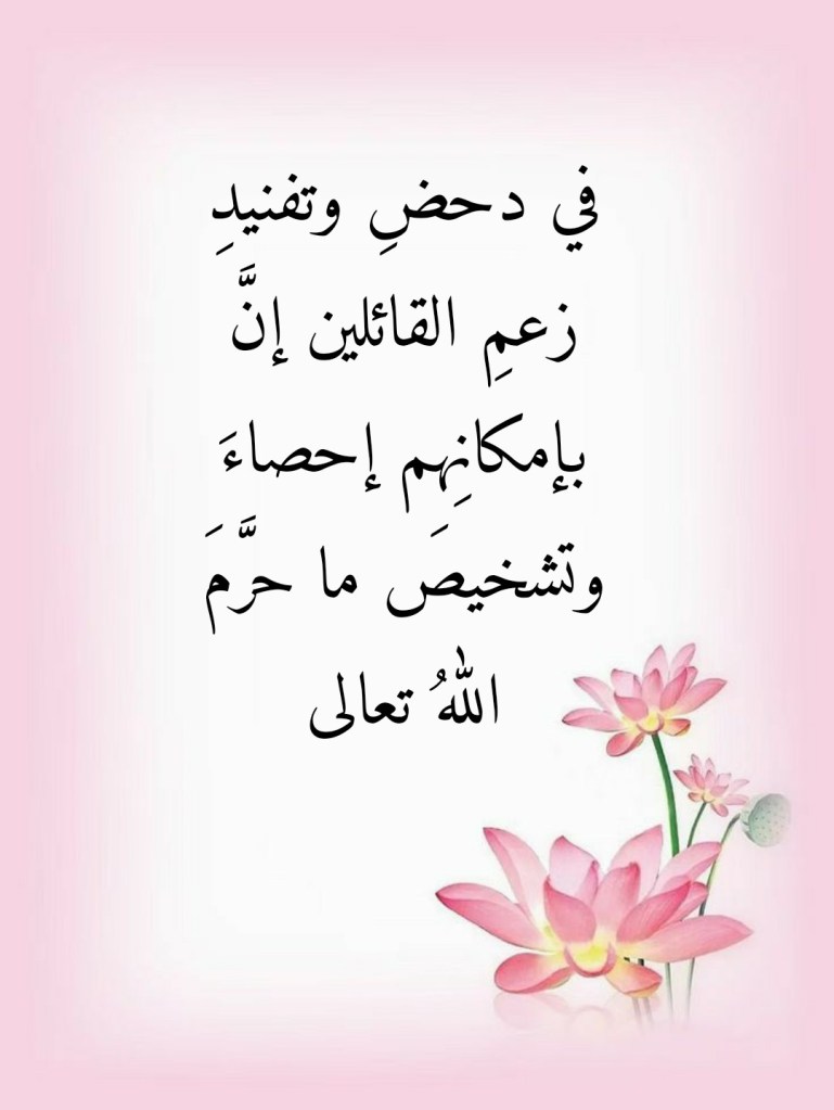 ولقد كان يكفي هؤلاء الذين تجاسروا على اللهِ تعالى بتحكيمِهم عقولَهم في قرآنِه العظيم أن يتدبَّروا آيةً واحدةً فحسب حتى يتبيَنَ لهم أنَّ إحصاءَ، وتشخيصَ، ما حرَّمَ اللهُ تعالى هو ليس بالأمرِ اليسيرِ الهَيِّن: (قُلْ إِنَّمَا حَرَّمَ رَبِّيَ الْفَوَاحِشَ مَا ظَهَرَ مِنْهَا وَمَا بَطَنَ وَالْإِثْمَ وَالْبَغْيَ بِغَيْرِ الْحَقِّ وَأَنْ تُشْرِكُوا بِاللَّهِ مَا لَمْ يُنَزِّلْ بِهِ سُلْطَانًا وَأَنْ تَقُولُوا عَلَى اللَّهِ مَا لَا تَعْلَمُونَ) (33 الأعراف). فكيف يكونُ من اليسيرِ أن نُحصِيَ هذا الذي جعلَه اللهُ تعالى حراماً علينا، وعرَّفَه لنا بقولِه “وَأَنْ تُشْرِكُوا بِاللَّهِ مَا لَمْ يُنَزِّلْ بِهِ سُلْطَانًا وَأَنْ تَقُولُوا عَلَى اللَّهِ مَا لَا تَعْلَمُونَ”؟ فمنذا الذي بوسعِه أن يُحدِّدَ لنا هذا الذي يجعلُنا نُشركُ باللهِ ما لم ينزِّل به سلطاناً ونقولُ على الله ما لا نعلم؟! وما يُدرينا أن هذا أو ذاك مما نقول هو ليس مما حرَّمَ اللهُ تعالى علينا حتى يكونَ لنا أن نقطعَ ونجزمَ بأنَّ من اليسيرِ إحصاءَ ما حرَّمَ اللهُ تعالى علينا؟!