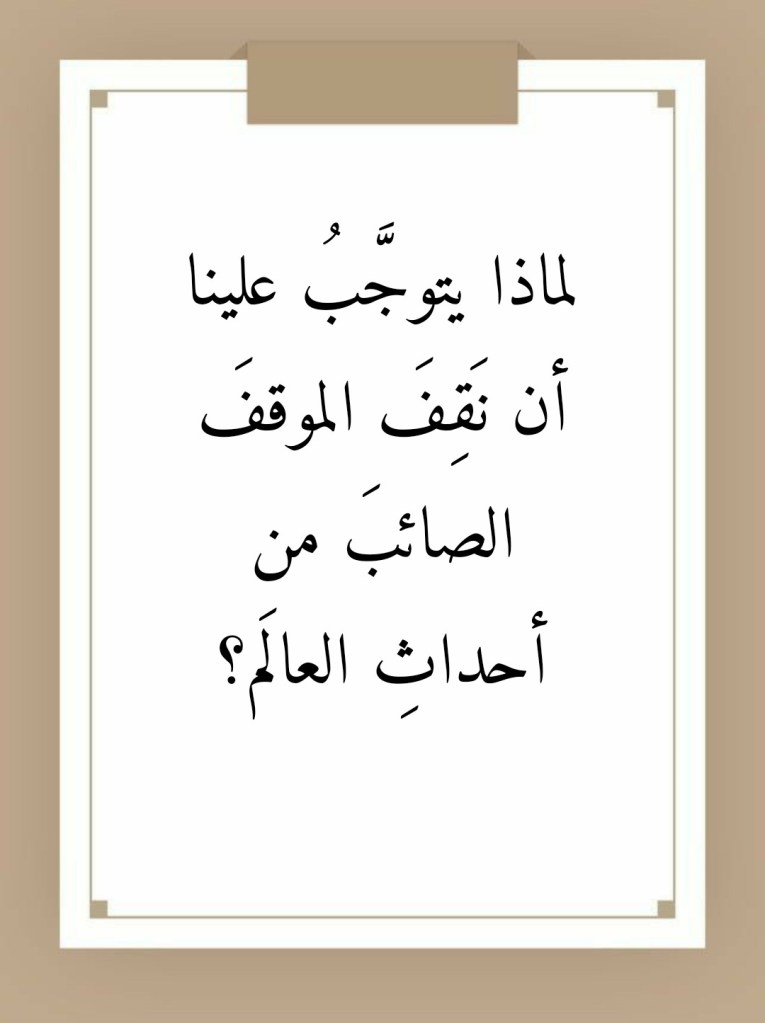 مارس 14, 2022مارس 19, 2022 Sufism24/7 لماذا يتوجَّبُ علينا أن نَقِفَ الموقفَ الصائبَ من أحداثِ العالَم؟ شارك هذا الموضوع: المشاركة على X (فتح في نافذة جديدة) X شارك على فيس بوك (فتح في نافذة جديدة) فيس بوك إعجاب تحميل... مرتبط