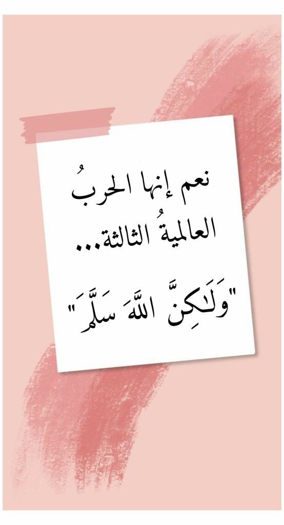 مارس 14, 2022مارس 19, 2022 Sufism24/7 نعم إنها الحربُ العالميةُ الثالثة… “وَلَٰكِنَّ اللَّهَ سَلَّمَ” شارك هذا الموضوع: النقر للمشاركة على X (فتح في نافذة جديدة) X انقر للمشاركة على فيسبوك (فتح في نافذة جديدة) فيس بوك إعجاب تحميل... مرتبط