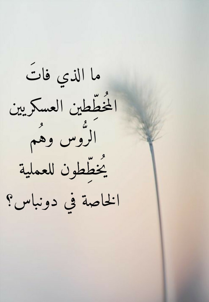 مارس 19, 2022مارس 19, 2022 Sufism24/7 ما الذي فاتَ المُخطِّطين العسكريين الرُّوس وهُم يُخطِّطون للعملية الخاصة في دونباس؟ شارك هذا الموضوع: النقر للمشاركة على X (فتح في نافذة جديدة) X انقر للمشاركة على فيسبوك (فتح في نافذة جديدة) فيس بوك إعجاب تحميل... مرتبط