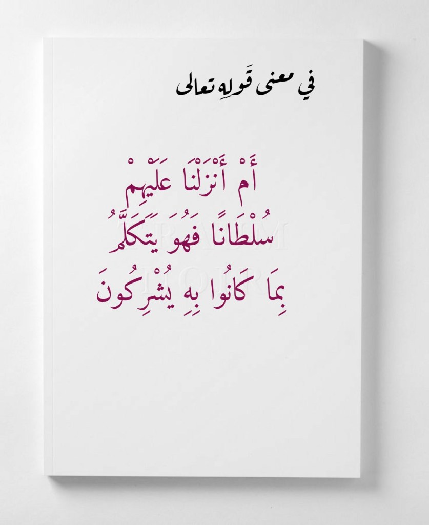 وهذا ما بوسعنا أن نتبيَّنه أيضاً بتدبُّرنا ما جاءتنا به سورةُ الروم في الآية الكريمة 35 منها (أَمْ أَنْزَلْنَا عَلَيْهِمْ سُلْطَانًا فَهُوَ يَتَكَلَّمُ بِمَا كَانُوا بِهِ يُشْرِكُونَ). فـ “السلطان” الذي تُشيرُ إليه هذه الآيةُ الكريمة هو أيٌّ من كتبِ اللهِ تعالى التي أنزلَها على عبادِه الذين اصطفى. فهذه الآيةُ الكريمة تؤكدُ وتجزمُ بأنَّ اللهَ تعالى ما أنزلَ من كتابٍ فيه ما يدَّعي كفارُ قريش من أنَّهم ما أشركوا إلا امتثالاً منهم وانصياعاً لما أمرَهم به اللهُ.