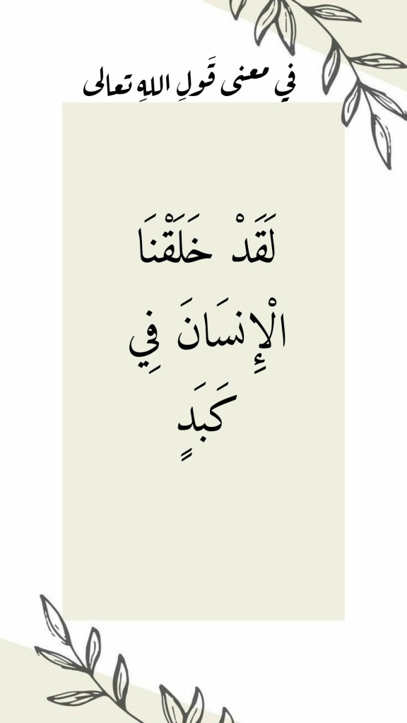 نقرأُ في سورةِ البلَد، وفي الآية الكريمة 4 منها: (لَقَدْ خَلَقْنَا الْإِنْسَانَ فِي كَبَدٍ). فما هو معنى أن يكونَ الإنسانُ قد خُلِقَ “في كَبَد”؟