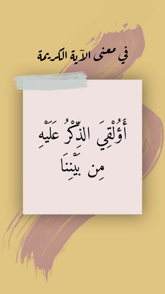 وبذلك يكونُ معنى الآيةِ الكريمة (أَؤُلْقِيَ الذِّكْرُ عَلَيْهِ مِنْ بَيْنِنَا)، موضوع المنشور، هو أنَّ قومَ سيدِنا صالح أنكروا عليه أن يكونَ اللهُ قد “فضَّلَه عليهم” فجعله رسولَه إليهم؛ فلو كان اللهُ ليرسِلَ رسولاً إليهم لاختارَ منهم مَن هو، في نظرهم، أجدرُ منه بأن يكونَ رسولَ اللهِ إليهم!