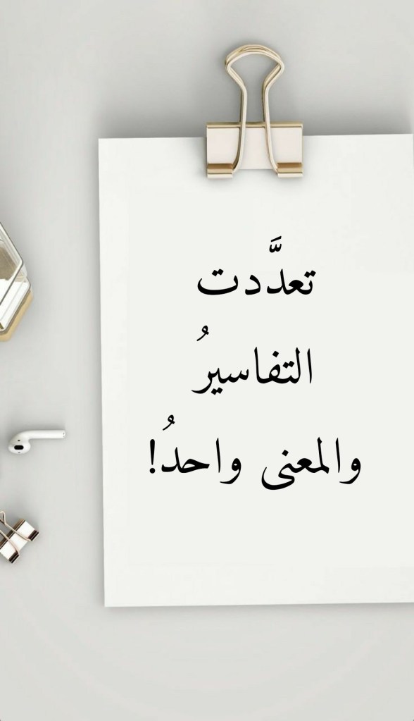 إنَّ تعدُّدَ تفاسيرِ القرآنِ العظيم أمرٌ لا ضيرَ فيه طالما كانت هذه التفاسيرُ لا يُعارضُ بعضُها بعضاً ولا يُناقِضُ بعضُها الآخر. فإذا كان القرآنُ “لا اختلافَ فيه”، فكيف يكونُ لتفاسيرِه أن يُخالفَ بعضُها الآخر وأن يختلفَ بعضُها مع بعض؟! وفي هذا المنشور سوف أضربُ مثالاً يتبيَّنُ لكلِّ مَن يتدبَّرُه بطلانُ وفسادُ الزعمِ القائلِ بأنَّ لتفاسيرِ القرآنِ العظيم أن يُعارضَ بعضُها بعضاً.