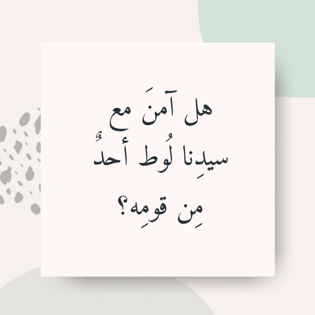 أنبأنا القرآنُ العظيم بألاَّ أحدَ من قوم سيدِنا لوط قد آمن معه (قَالُوا إِنَّا أُرْسِلْنَا إِلَى قَوْمٍ مُجْرِمِينَ. لِنُرْسِلَ عَلَيْهِمْ حِجَارَةً مِنْ طِينٍ. مُسَوَّمَةً عِنْدَ رَبِّكَ لِلْمُسْرِفِينَ. فَأَخْرَجْنَا مَنْ كَانَ فِيهَا مِنَ الْمُؤْمِنِينَ. فَمَا وَجَدْنَا فِيهَا غَيْرَ بَيْتٍ مِنَ الْمُسْلِمِينَ) (32- 36 الذاريات).