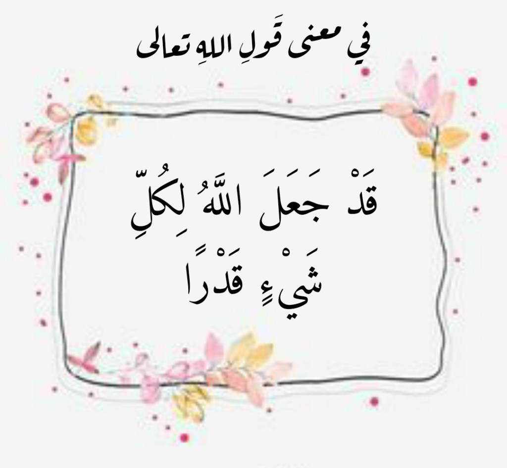 ماي 13, 2022 Sufism24/7 في معنى قَولِ اللهِ تعالى “قَدْ جَعَلَ اللَّهُ لِكُلِّ شَيْءٍ قَدْرًا” شارك هذا الموضوع: النقر للمشاركة على X (فتح في نافذة جديدة) X انقر للمشاركة على فيسبوك (فتح في نافذة جديدة) فيس بوك إعجاب تحميل... مرتبط