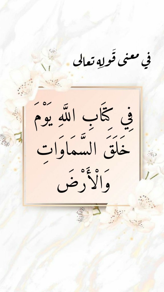 نقرأُ في سورةِ التوبة، وفي الآية الكريمة 36 منها، قولَه تعالى: (إِنَّ عِدَّةَ الشُّهُورِ عِنْدَ اللَّهِ اثْنَا عَشَرَ شَهْرًا فِي كِتَابِ اللَّهِ يَوْمَ خَلَقَ السَّمَاوَاتِ وَالْأَرْضَ مِنْهَا أَرْبَعَةٌ حُرُمٌ ذَلِكَ الدِّينُ الْقَيِّمُ). فما معنى “فِي كِتَابِ اللَّهِ يَوْمَ خَلَقَ السَّمَاوَاتِ وَالْأَرْضَ” في هذه الآيةِ الكريمة؟