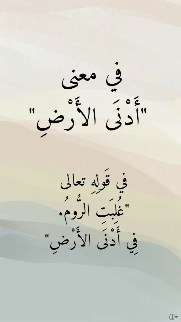 فالقرآنُ العظيم يتحدثُ عن معركةٍ خسرها الرومُ جرَت وقائعُها في أرضٍ غيرِ بعيدةٍ عن عاصمتِهم. ولقد أشارَ القرآنُ العظيم إلى تلك الأرضِ التي شهدت هزيمةَ الرومِ أمام عدوِّهم فوصفَها بأنَّها “أدنى الأرض”، وذلك تبياناً منه لمدى قربِها من عاصمتِهم؛ هذا القربُ الشديدُ الذي يُنبئُ بما كان عليه جيشُ الروم من ضعفٍ غيرِ مُبرَّرٍ على الإطلاق. فالقومُ كانوا غيرَ بعيدين عن معسكراتِ “السَّوقِ والتعبأة” حتى تُبرَّرَ هزيمتُهم ببُعدِ المسافةِ التي تفصلُ بينهم وبين مراكزِ الإمدادِ عُدةً وعَتاداً! فالرومُ لم يكونوا في “أقصى الأرضِ” بعيدين عن مركزِ “السَّوقَ والتعبأة” آلافَ الكيلومترات حتى يتعذَّرَ إمدادُهم بالرجالِ والسلاح!