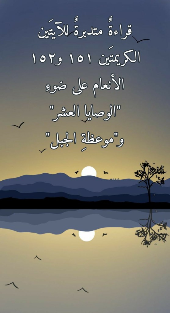 ماي 30, 2022 Sufism24/7 قراءةٌ متدبرةٌ للآيتَين الكريمتَين ١٥١ و١٥٢ الأنعام على ضوءِ “الوصايا العشر” و”موعظةِ الجبل” شارك هذا الموضوع: النقر للمشاركة على X (فتح في نافذة جديدة) X انقر للمشاركة على فيسبوك (فتح في نافذة جديدة) فيس بوك إعجاب تحميل... مرتبط