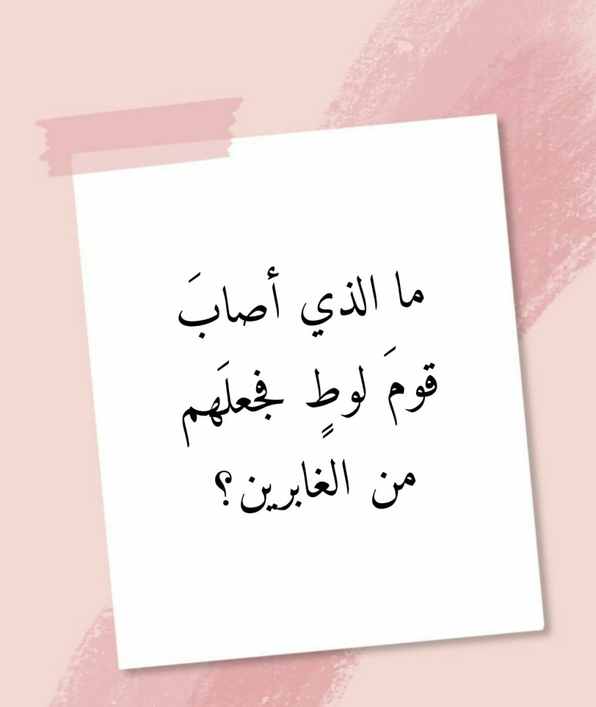 1- (إِلَّا آلَ لُوطٍ إِنَّا لَمُنَجُّوهُمْ أَجْمَعِينَ. فَأَنْجَيْنَاهُ وَأَهْلَهُ إِلَّا امْرَأَتَهُ كَانَتْ مِنَ الْغَابِرِينَ) (59- 60 الحجر).