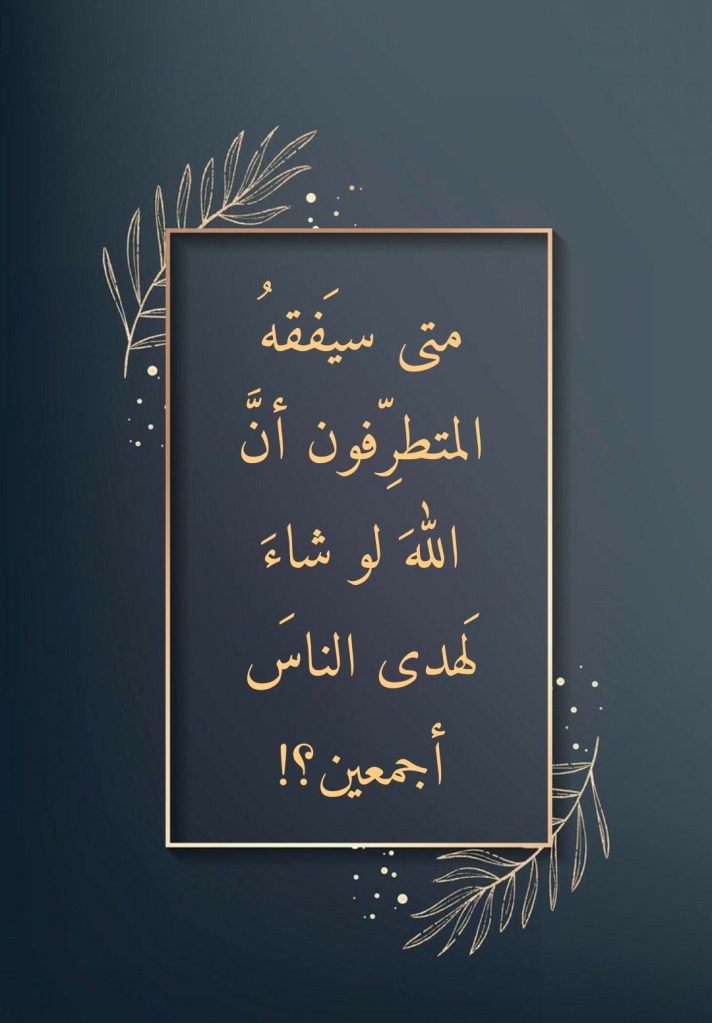 نصَّبَ المتطرفون أنفسَهم أوصياءَ على دينِ اللهِ تعالى فزعموا بأنَّ ذلك يُجيزُ لهم أن يفرضوا دينَ اللهِ تعالى على الناسِ أجمعين! ولو أنَّ المتطرفين كانوا على شيءٍ حقاً لأدركوا أنَّهم بهذه “الوصاية” المزعومة قد خرجوا على دينِ اللهِ تعالى! فاللهُ تعالى بيَّنَ لنا في قرآنِه العظيم، وفي مواطنَ منه عديدة، أنَّه لو شاء لهدى الناسَ أجمعين: (أَفَلَمْ يَيْأَسِ الَّذِينَ آمَنُوا أَنْ لَوْ يَشَاءُ اللَّهُ لَهَدَى النَّاسَ جَمِيعًا) (من 31 الرعد)، (وَلَوْ شَاءَ رَبُّكَ لَآمَنَ مَنْ فِي الْأَرْضِ كُلُّهُمْ جَمِيعًا أَفَأَنْتَ تُكْرِهُ النَّاسَ حَتَّى يَكُونُوا مُؤْمِنِينَ) (99 يونس)، (وَلَوْ شَاءَ رَبُّكَ لَجَعَلَ النَّاسَ أُمَّةً وَاحِدَةً وَلَا يَزَالُونَ مُخْتَلِفِينَ) (118 هود).