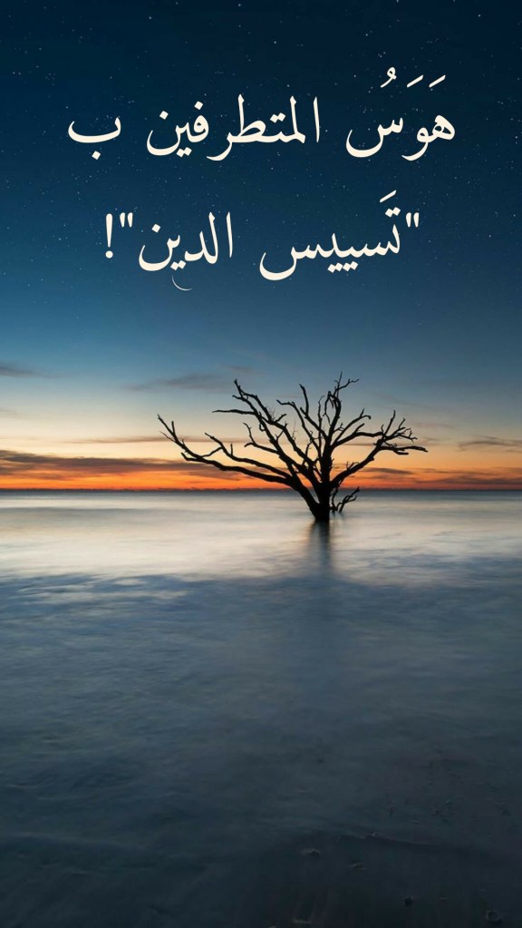 ألا فليخسأ المتطرفون الذين ما جرَّ سعيُهم إلى “تسييس الدين” على الأمةِ إلا الويلَ والثَّبورَ والخراب! فاللهُ تعالى ما كان ليجعلَ تديُّنَ العبادِ مشروطاً بهذا أو ذاكَ من الأسباب!