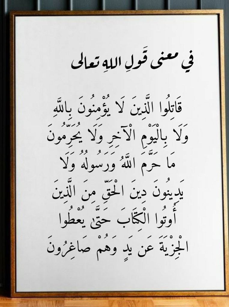 فنحن لن نُفلِحَ في تدبُّرِ الآيةِ الكريمةِ 29 من سورةِ التوبة حتى نقرأَها على ضوءٍ من هذه “الآياتِ الأُخَر”. ومن هذه الآياتِ قولُ اللهِ تعالى: