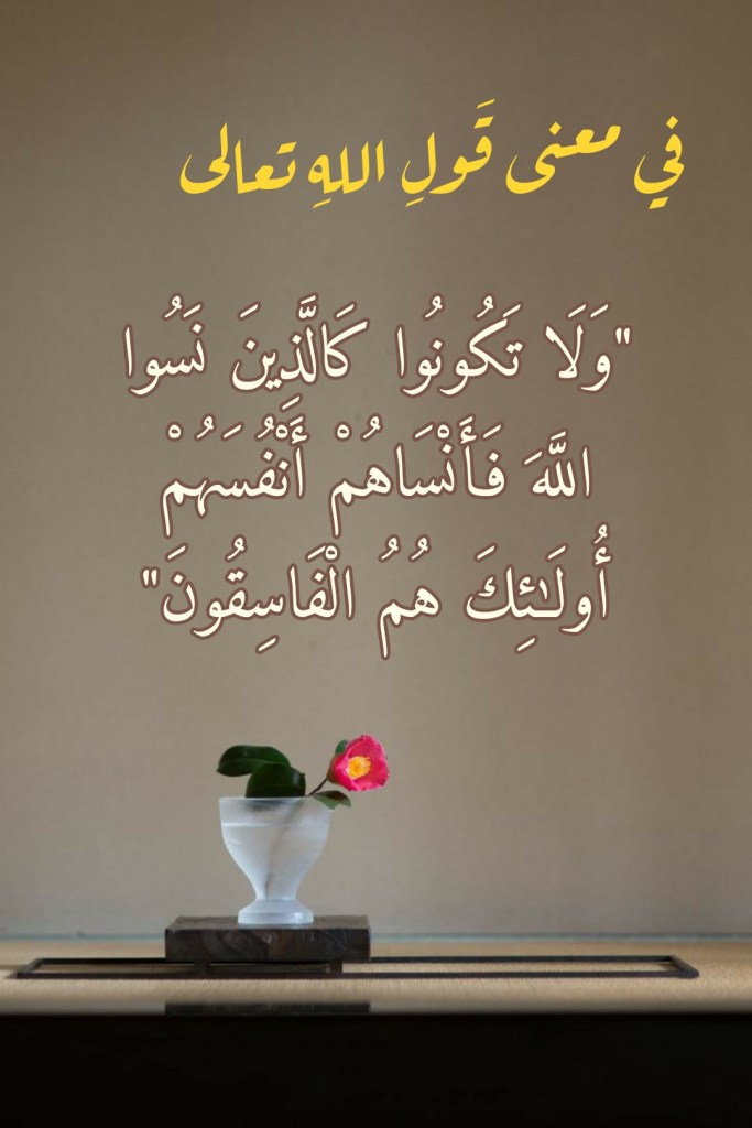جويلية 2, 2022 Sufism24/7 في معنى قَولِ اللهِ تعالى “وَلَا تَكُونُوا كَالَّذِينَ نَسُوا اللَّهَ فَأَنْسَاهُمْ أَنْفُسَهُمْ أُولَٰئِكَ هُمُ الْفَاسِقُونَ” شارك هذا الموضوع: النقر للمشاركة على X (فتح في نافذة جديدة) X انقر للمشاركة على فيسبوك (فتح في نافذة جديدة) فيس بوك إعجاب تحميل... مرتبط