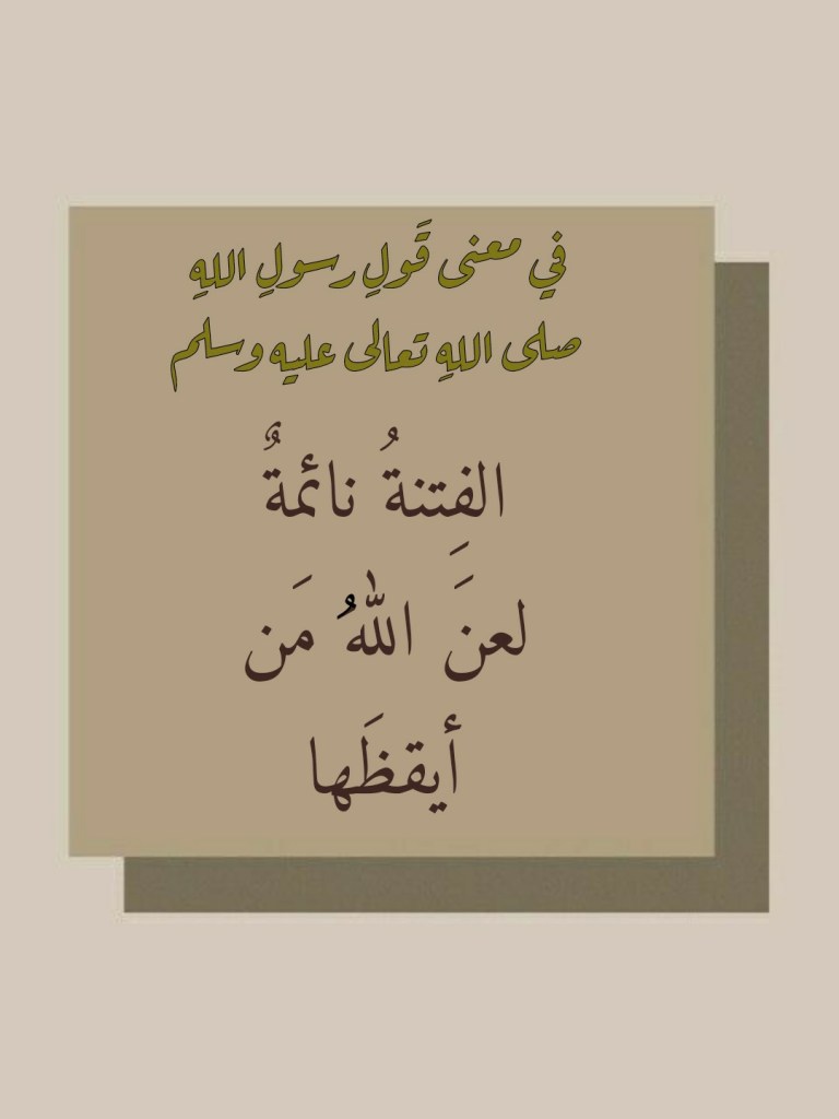 جويلية 10, 2022جويلية 11, 2022 Sufism24/7 في معنى قَولِ رسولِ اللهِ صلى اللهِ تعالى عليه وسلم “الفِتنةُ نائمةٌ لعنَ اللهُ مَن أيقظَها” شارك هذا الموضوع: المشاركة على X (فتح في نافذة جديدة) X شارك على فيس بوك (فتح في نافذة جديدة) فيس بوك إعجاب تحميل... مرتبط