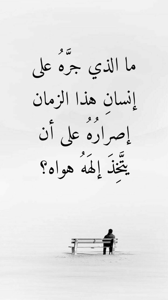جويلية 28, 2022 Sufism24/7 ما الذي جرَّهُ على إنسانِ هذا الزمان إصرارُهُ على أن يتَّخِذَ إلهَهُ هواه؟ شارك هذا الموضوع: النقر للمشاركة على X (فتح في نافذة جديدة) X انقر للمشاركة على فيسبوك (فتح في نافذة جديدة) فيس بوك إعجاب تحميل... مرتبط