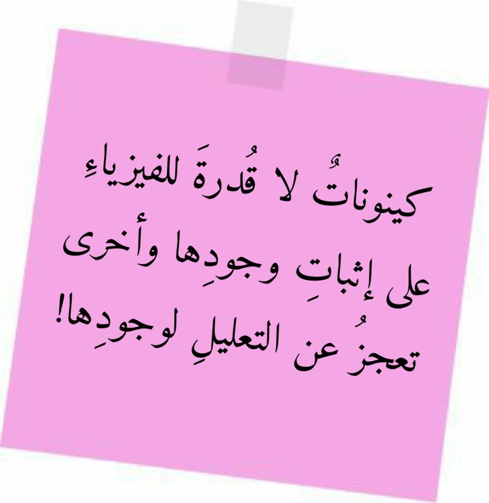 جويلية 30, 2022 Sufism24/7 كينوناتٌ لا قُدرةَ للفيزياءِ على إثباتِ وجودِها وأخرى تعجزُ عن التعليلِ لوجودِها! شارك هذا الموضوع: النقر للمشاركة على X (فتح في نافذة جديدة) X انقر للمشاركة على فيسبوك (فتح في نافذة جديدة) فيس بوك إعجاب تحميل... مرتبط