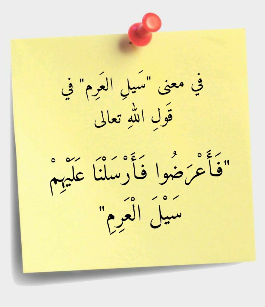 نقرأُ في سورةِ سبأ، وفي الآياتِ الكريمةِ 15- 17 منها، قَولَ اللهِ تعالى (لَقَدْ كَانَ لِسَبَإٍ فِي مَسْكَنِهِمْ آيَةٌ جَنَّتَانِ عَنْ يَمِينٍ وَشِمَالٍ كُلُوا مِنْ رِزْقِ رَبِّكُمْ وَاشْكُرُوا لَهُ بَلْدَةٌ طَيِّبَةٌ وَرَبٌّ غَفُورٌ. فَأَعْرَضُوا فَأَرْسَلْنَا عَلَيْهِمْ سَيْلَ الْعَرِمِ وَبَدَّلْنَاهُمْ بِجَنَّتَيْهِمْ جَنَّتَيْنِ ذَوَاتَيْ أُكُلٍ خَمْطٍ وَأَثْلٍ وَشَيْءٍ مِنْ سِدْرٍ قَلِيلٍ. ذَلِكَ جَزَيْنَاهُمْ بِمَا كَفَرُوا وَهَلْ نُجَازِي إِلَّا الْكَفُورَ). فما معنى “سَيلِ العَرِم” الواردُ ذكرُه في هذه القصَصِ الشريفة؟