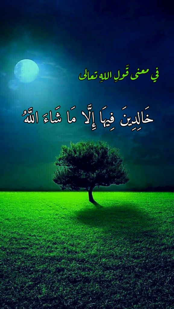 يُعينُ على تبيُّنِ هذا المعنى أن نتدبَّرَ الآية الكريمة 108 من سورةِ هود (وَأَمَّا الَّذِينَ سُعِدُوا فَفِي الْجَنَّةِ خَالِدِينَ فِيهَا مَا دَامَتِ السَّمَاوَاتُ وَالْأَرْضُ إِلَّا مَا شَاءَ رَبُّكَ عَطَاءً غَيْرَ مَجْذُوذٍ). إذ يتبيَّنُ لنا بتدبُّرِ هذه الآية الكريمة أنَّ معنى “خَالِدِينَ فِيهَا إِلَّا مَا شَاءَ اللَّهُ” هو ذاتُ المعنى الذي بإمكانِنا أن نُحيطَ به بتدبُّرِنا الآيتَين الكريمتَين 106- 107 من سورةِ هود (فَأَمَّا الَّذِينَ شَقُوا فَفِي النَّارِ لَهُمْ فِيهَا زَفِيرٌ وَشَهِيقٌ(106)خَالِدِينَ فِيهَا مَا دَامَتِ السَّمَاوَاتُ وَالْأَرْضُ إِلَّا مَا شَاءَ رَبُّكَ إِنَّ رَبَّكَ فَعَّالٌ لِمَا يُرِيدُ). فأصحابُ النارِ خالدون في النارِ “إلى ما شاءَ الله”، أي إلى أبدِ الآبدين.