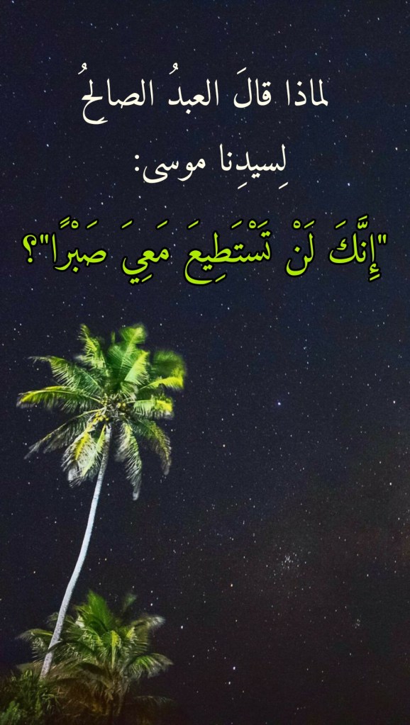 أوت 25, 2022 Sufism24/7 لماذا قالَ العبدُ الصالِحُ لِسيدِنا موسى: “إِنَّكَ لَنْ تَسْتَطِيعَ مَعِيَ صَبْرًا”؟ شارك هذا الموضوع: النقر للمشاركة على X (فتح في نافذة جديدة) X انقر للمشاركة على فيسبوك (فتح في نافذة جديدة) فيس بوك إعجاب تحميل... مرتبط