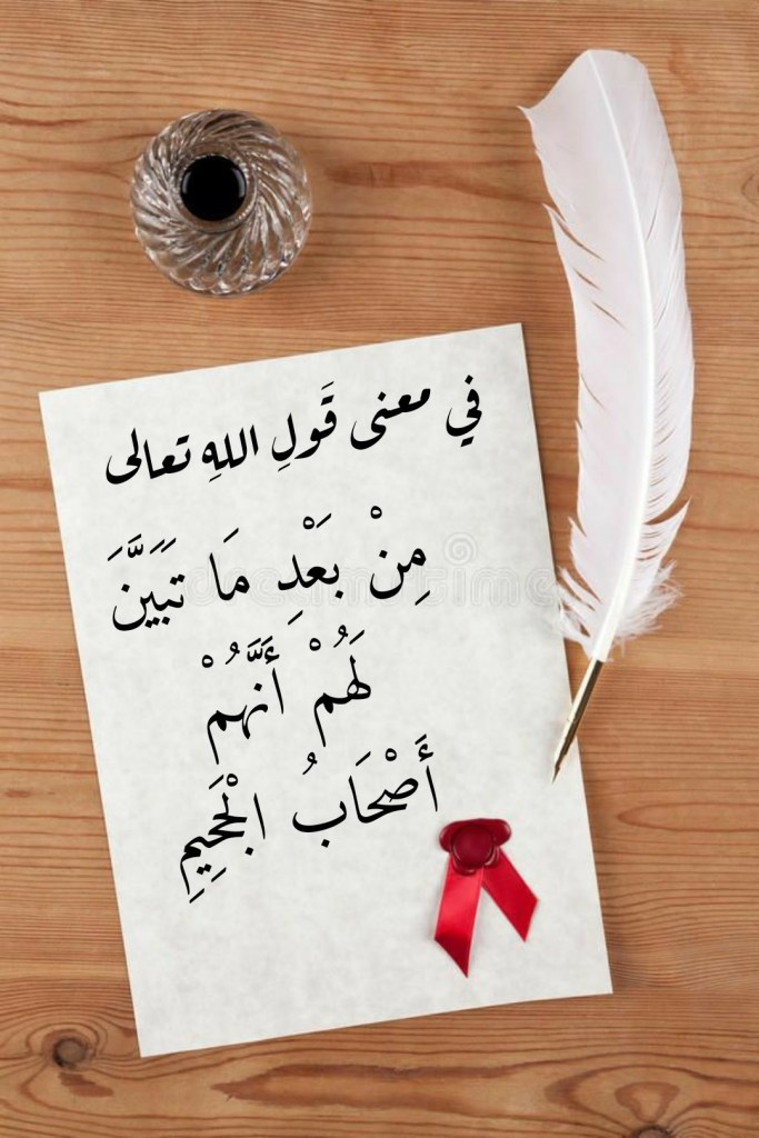نقرأُ في سورةِ التوبة، وفي الآيةِ الكريمة 113 منها، قَولَ اللهِ تعالى: (وما كانَ لِلنَّبِيِّ وَالَّذِينَ آمَنُوا أَنْ يَسْتَغْفِرُوا لِلْمُشْرِكِينَ وَلَوْ كَانُوا أُولِي قُرْبَى مِنْ بَعْدِ مَا تَبَيَّنَ لَهُمْ أَنَّهُمْ أَصْحَابُ الْجَحِيمِ). فما هو معنى “مِنْ بَعْدِ مَا تَبَيَّنَ لَهُمْ أَنَّهُمْ أَصْحَابُ الْجَحِيمِ”؟