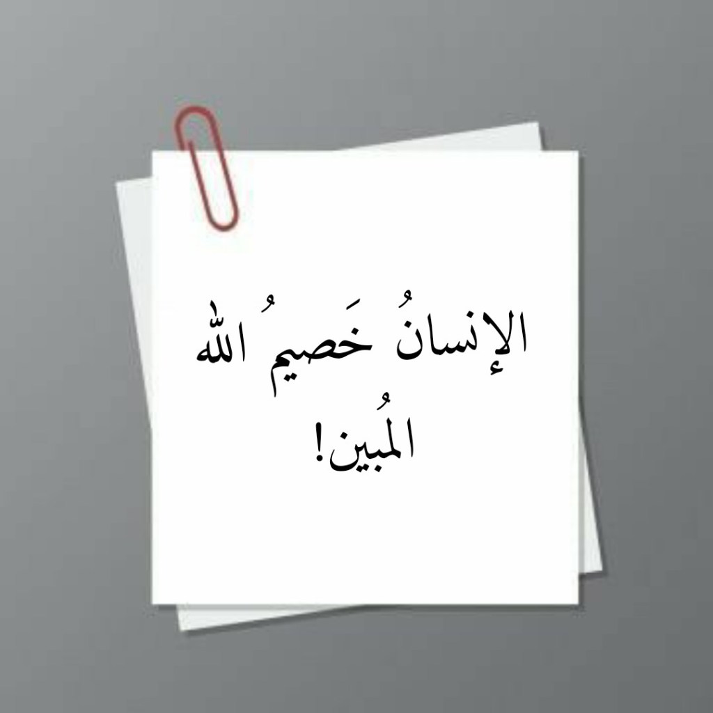 ولقد وصفَ القرآنُ العظيم “الإنسانَ المجادِلَ” بصفةٍ سماها “الخَصيم”، وذلك في دلالةٍ تُشيرُ إلى هذا الذي هو عليه الإنسانُ من استعدادٍ للذهابِ إلى “الخصومةِ”، والتي هي أقصى درجاتِ العداوة، إصراراً منه على المُضي قدُماً في جدَلِهِ وجدالِهِ ومجادلتِه! فالخصيمُ، وفقاً للسانِ القرآنِ العربي المبين، هو مَن لا يضيرُهُ أن يُعادِيَكَ فيُصبِحَ عدوَّك إذا ما أنت أصررتَ على المُضِي قدُماً في مجادلتِه! ولقد سمَّى اللهُ تعالى الإنسانَ بـ “خصيمِه المبين”، وذلك في موطنَين اثنين: