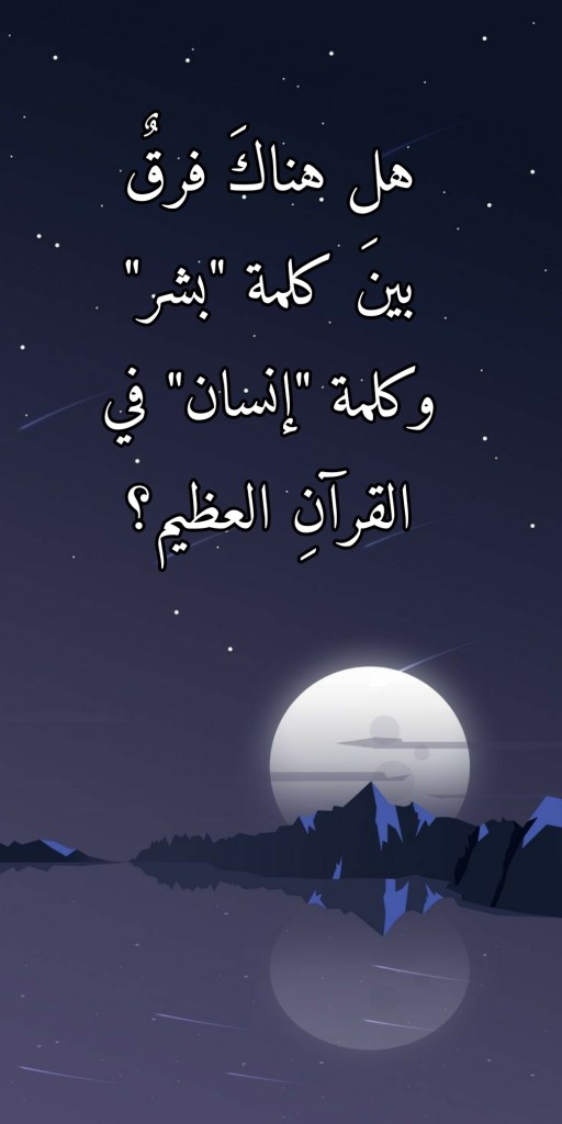 يتبيَّنُ لنا، وبمقارنةِ هاتين المنظومتَين من الآياتِ الكريمة، بألا فرقَ هنالكَ على الإطلاق بين كلمةِ “بشر” وكلمةِ “إنسان” في القرآنِ العظيم.
