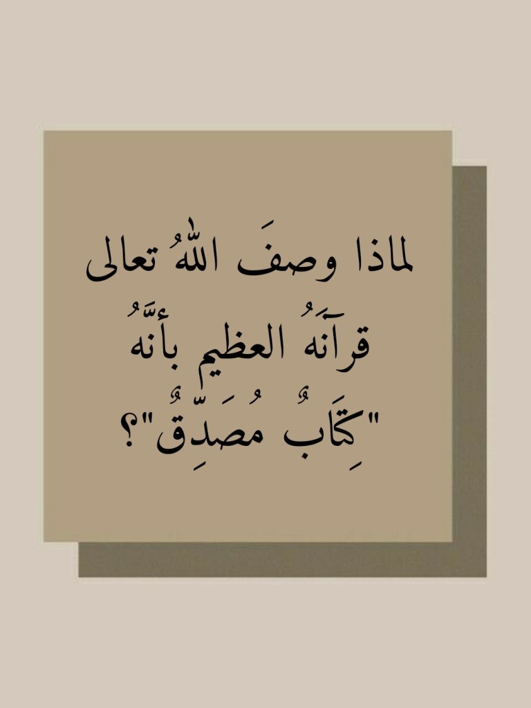 نقرأُ في سورةِ الأحقاف، وفي الآيةِ الكريمة 12 منها، قَولَ اللهِ تعالى: (وَمِنْ قَبْلِهِ كِتَابُ مُوسَى إِمَامًا وَرَحْمَةً وَهَذَا كِتَابٌ مُصَدِّقٌ لِسَانًا عَرَبِيًّا لِيُنْذِرَ الَّذِينَ ظَلَمُوا وَبُشْرَى لِلْمُحْسِنِينَ) (12 الأحقاف). فلماذا وصفَ اللهُ تعالى قرآنَهُ العظيم بأنَّه “كتابٌ مصدِّق”؟