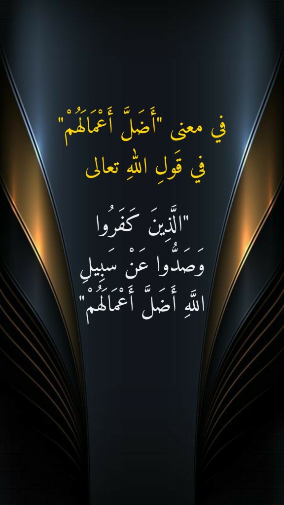 أكتوبر 20, 2022 Sufism24/7 في معنى “أَضَلَّ أَعْمَالَهُمْ” في قَولِ اللهِ تعالى “الَّذِينَ كَفَرُوا وَصَدُّوا عَنْ سَبِيلِ اللَّهِ أَضَلَّ أَعْمَالَهُمْ” شارك هذا الموضوع: النقر للمشاركة على X (فتح في نافذة جديدة) X انقر للمشاركة على فيسبوك (فتح في نافذة جديدة) فيس بوك إعجاب تحميل... مرتبط