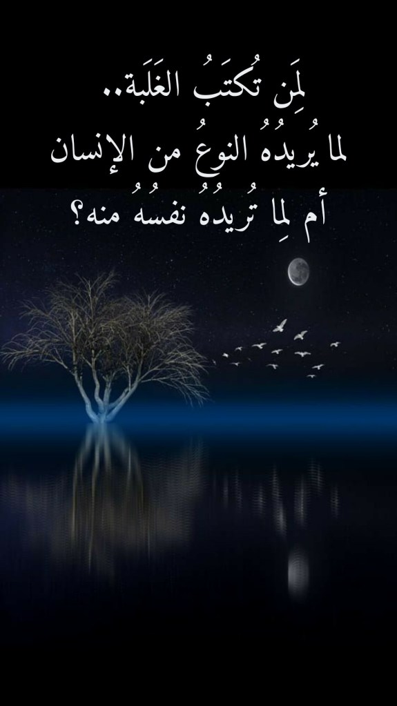 أكتوبر 22, 2022 Sufism24/7 لِمَن تُكتَبُ الغَلَبة.. لما يُريدُهُ النوعُ من الإنسان أم لِما تُريدُهُ نفسُهُ منه؟ شارك هذا الموضوع: النقر للمشاركة على X (فتح في نافذة جديدة) X انقر للمشاركة على فيسبوك (فتح في نافذة جديدة) فيس بوك إعجاب تحميل... مرتبط