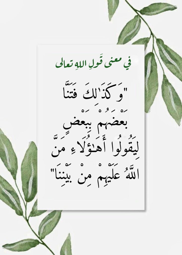 نوفمبر 2, 2022 Sufism24/7 في معنى قَولِ اللهِ تعالى “وَكَذَٰلِكَ فَتَنَّا بَعْضَهُمْ بِبَعْضٍ لِيَقُولُوا أَهَٰؤُلَاءِ مَنَّ اللَّهُ عَلَيْهِمْ مِنْ بَيْنِنَا” شارك هذا الموضوع: النقر للمشاركة على X (فتح في نافذة جديدة) X انقر للمشاركة على فيسبوك (فتح في نافذة جديدة) فيس بوك إعجاب تحميل... مرتبط