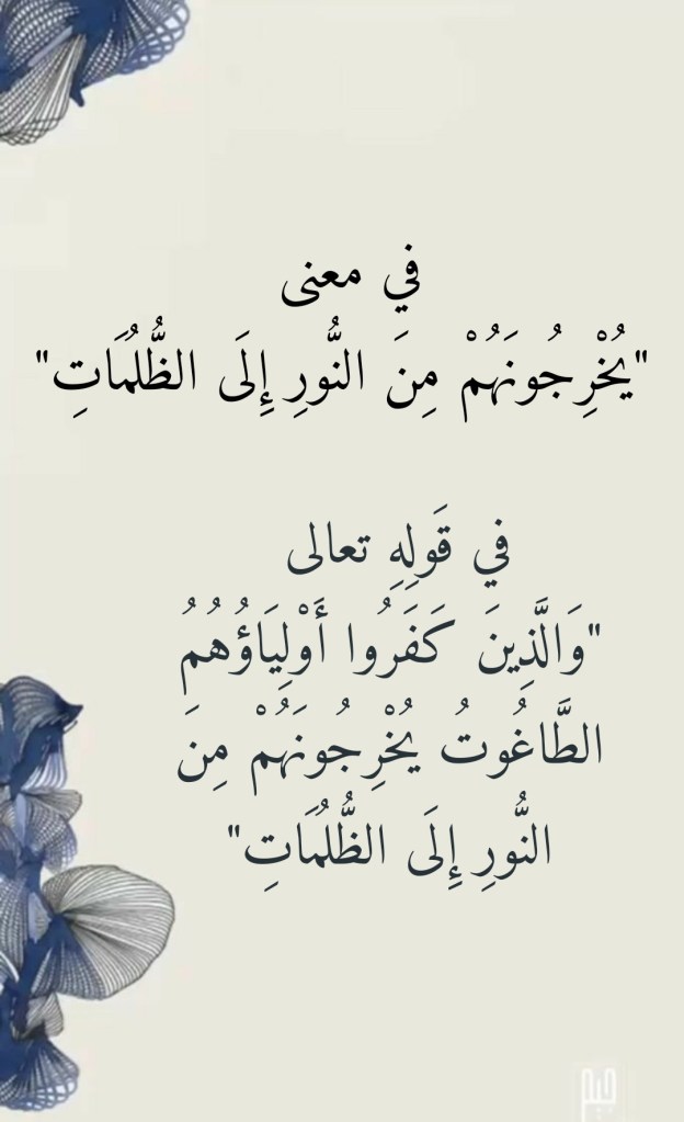 نوفمبر 3, 2022 Sufism24/7 في معنى “يُخْرِجُونَهُمْ مِنَ النُّورِ إِلَى الظُّلُمَاتِ” في قَولِهِ تعالى “وَالَّذِينَ كَفَرُوا أَوْلِيَاؤُهُمُ الطَّاغُوتُ يُخْرِجُونَهُمْ مِنَ النُّورِ إِلَى الظُّلُمَاتِ” شارك هذا الموضوع: النقر للمشاركة على X (فتح في نافذة جديدة) X انقر للمشاركة على فيسبوك (فتح في نافذة جديدة) فيس بوك إعجاب تحميل... مرتبط