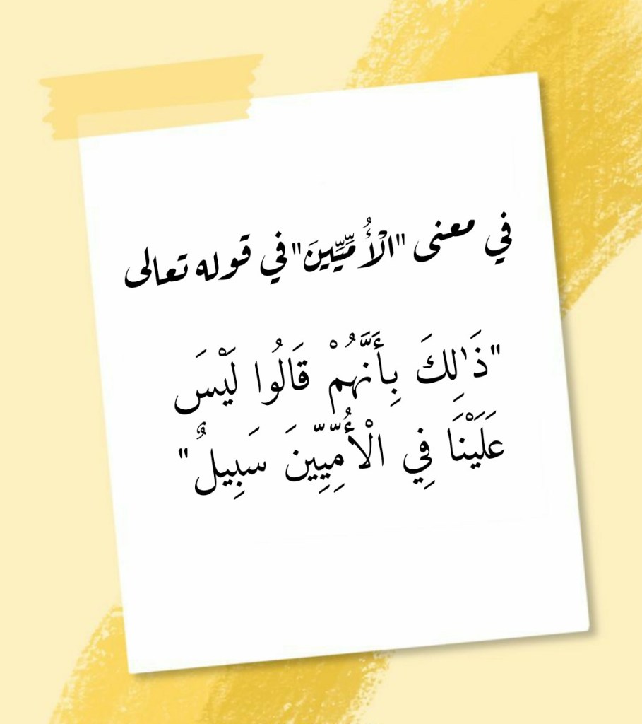 نوفمبر 7, 2022 Sufism24/7 في معنى “الْأُمِّيِّينَ” في قوله تعالى “ذَٰلِكَ بِأَنَّهُمْ قَالُوا لَيْسَ عَلَيْنَا فِي الْأُمِّيِّينَ سَبِيلٌ” شارك هذا الموضوع: النقر للمشاركة على X (فتح في نافذة جديدة) X انقر للمشاركة على فيسبوك (فتح في نافذة جديدة) فيس بوك إعجاب تحميل... مرتبط
