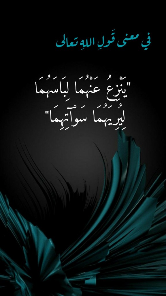 ديسمبر 1, 2022ديسمبر 1, 2022 Sufism24/7 في معنى قَولِ اللهِ تعالى “يَنْزِعُ عَنْهُمَا لِبَاسَهُمَا لِيُرِيَهُمَا سَوْآتِهِمَا” شارك هذا الموضوع: النقر للمشاركة على X (فتح في نافذة جديدة) X انقر للمشاركة على فيسبوك (فتح في نافذة جديدة) فيس بوك إعجاب تحميل... مرتبط