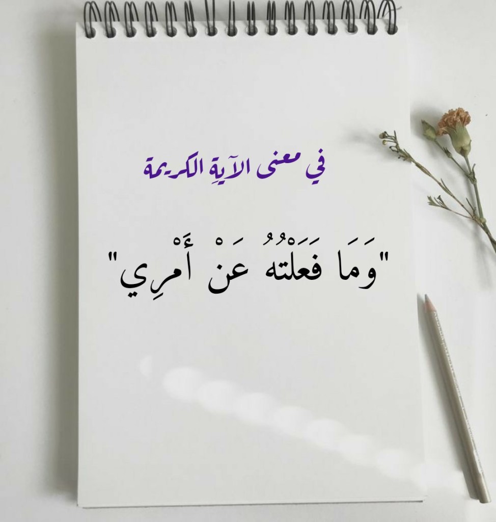 نقرأُ في الآيةِ الكريمة 82 من سورةِ الكهف: (وَمَا فَعَلْتُهُ عَنْ أَمْرِي). وهذه الكلماتُ الكريمة هي ما حفظتهُ لنا هذه الآيةُ الكريمة من قَولِ “العبد الصالح” وهو يختَتِمُ تأويلَه لِما توهَّمَهُ سيدُنا موسى خروجاً على شَرعِ اللهِ تعالى وتعدِّياً على حدودِه وهو ينظرُ بأُمِّ عَينَيه إلى ما فعلَه هذا العبدُ الصالحُ مع السفينةِ، ومع الغلامِ، ومع الجدار. فالعبدُ الصالحُ بيَّنَ لسيدِنا موسى أنَّ ما صدرَ عنه من فعلٍ لم يكن “عن أمرِه”، ولم يفعله من تلقاءِ نفسِه، ولكنه فعلَ ما فعلَ مؤتمِراً بأمرِ اللهِ تعالى.
