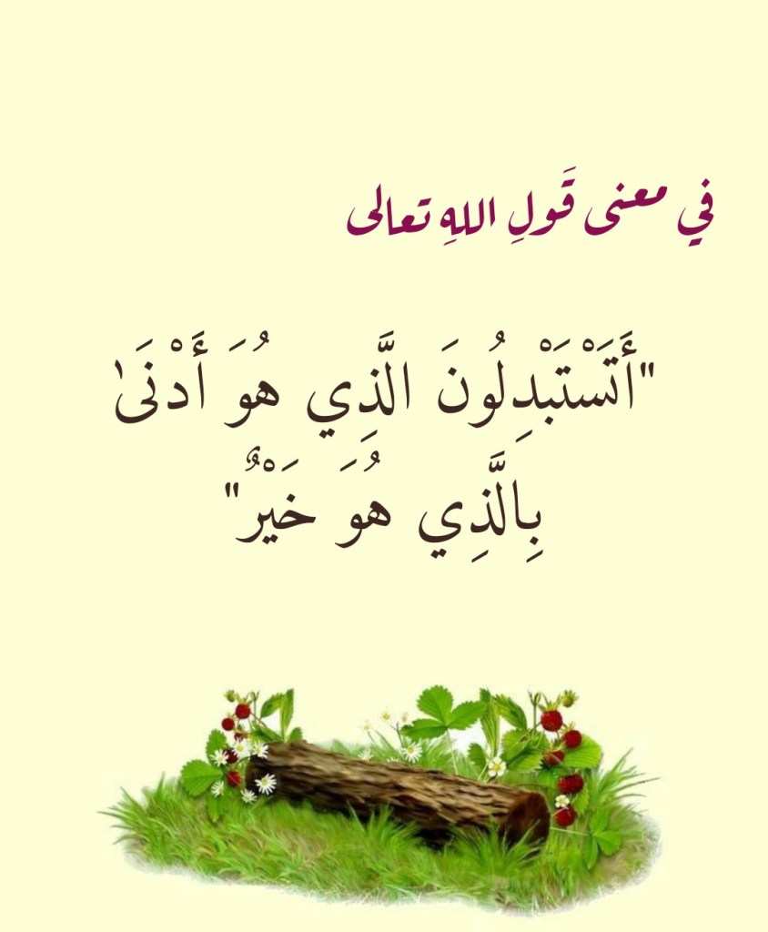 نقرأُ في سورةِ البقرة، وفي الآية الكريمة 61 منها: (وَإِذْ قُلْتُمْ يَا مُوسَى لَنْ نَصْبِرَ عَلَى طَعَامٍ وَاحِدٍ فَادْعُ لَنَا رَبَّكَ يُخْرِجْ لَنَا مِمَّا تُنْبِتُ الْأَرْضُ مِنْ بَقْلِهَا وَقِثَّائِهَا وَفُومِهَا وَعَدَسِهَا وَبَصَلِهَا قَالَ أَتَسْتَبْدِلُونَ الَّذِي هُوَ أَدْنَى بِالَّذِي هُوَ خَيْرٌ). فلماذا قالَ سيدُنا موسى لقومِه “أَتَسْتَبْدِلُونَ الَّذِي هُوَ أَدْنَى بِالَّذِي هُوَ خَيْرٌ”؟